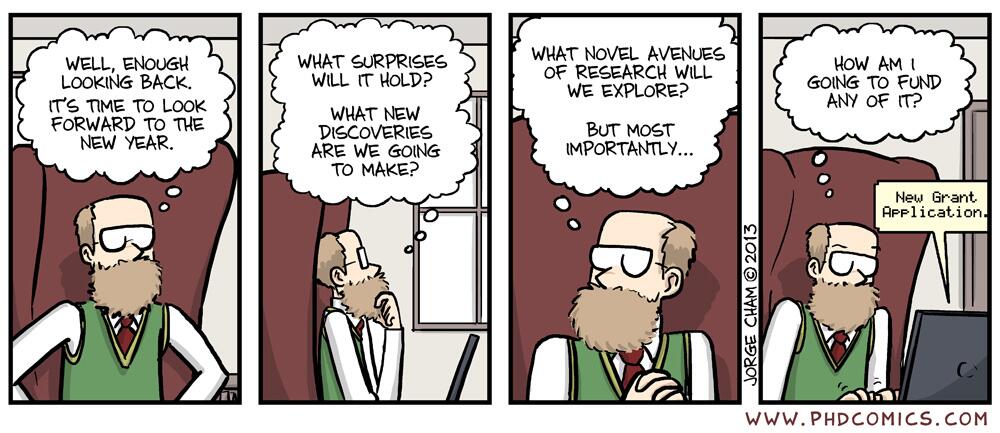 Indeed. Even as 2014 will be a year where one book comes out and I finish the other early in the year (like maybe January?), I will still be looking for money to fund the next project. And then the one after that and so on. Not every hunk of research requires grant money, but pretty much every book project does. The two books of this year were essentially funded by one grant, and I am hoping to do something like that again.
